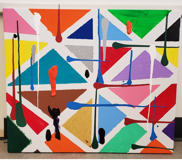 - “Geometric Colours” by Mrs. Bornau & Ms. Schindler’s Gr. 8D SOLD FOR: $200