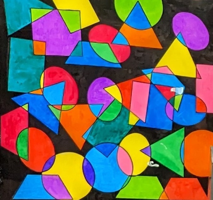 - “A Galaxy of Shapes” by Ms. Roberts’ Gr. 8A 12″x12″ each SOLD FOR: $50